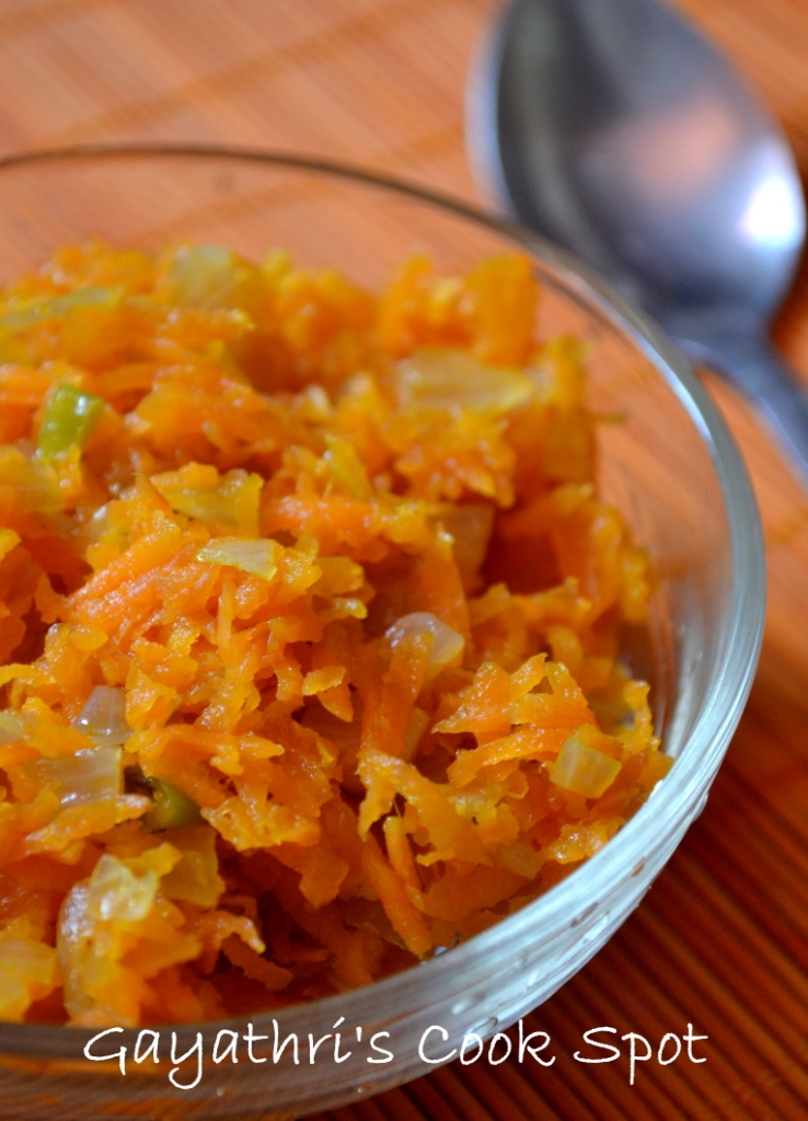 Carrot Poriyal-A sweet version of a side dish with carrot