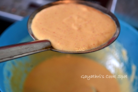 2. Add enough water to make a batter slightly thinner than the idli batter.