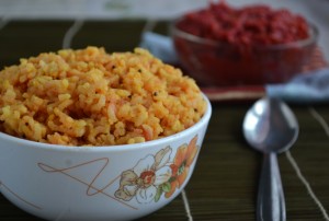 I usually have a bowl of carrot beetroot chutney in fridge for Sruti. She likes it with her morning dosa. I tried this rice for her lunch box today. As she gets only 20minutes for her lunch break, she doesn’t finish her vegetables. So when I met her teacher she asked me to send something simple and easy to eat. So I decided on doing variety rices with vegetables so that she will get the portion of vegetables in her diet. After I started sending variety rice, she is promptly finishing her lunch box. This rice is very easy to prepare if you have chutney ready. You can prepare this rice with any chutney you have. This is also the best way to use up left over chutney.