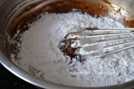 5. Remove from heat and add cocoa powder and powdered sugar.