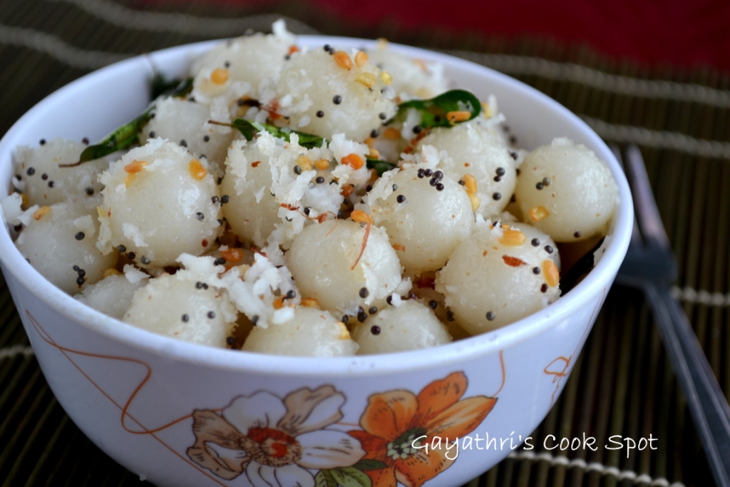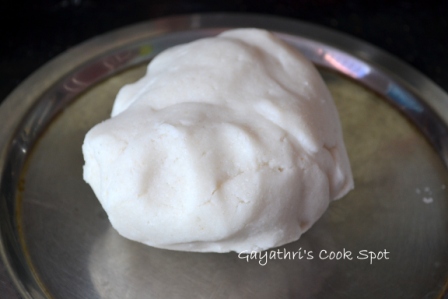 The next kozhukkattai for this Blogging Marathon is a savoury kozhukkattai. When ever mom prepares poornam kozhukkattai, she prepares this with the excess dough. It is my most favourite snack during Ganesh Chaturti. The dough is divides and rolled into tiny balls and steam cooked. Then it is tempered with spiced for a delicious evening snack. The rice flour is the kozhukkaattai maavu mentioned earlier. For the method of preparation please visit my other blog – How to prepare Puttu/ Kozhukkattai Maavu.
