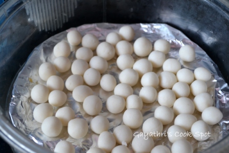 7. Steam cook the kozhukkattai until shiny and firm to touch.