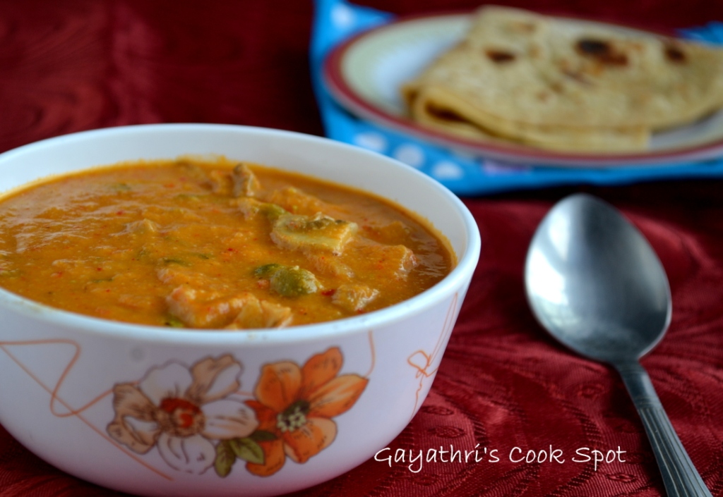 Wondering what Dingri is? It is the mushrooms. I got to know it from a Tarla Dala book and this recipe is also adapted from her recipe. This creamy gravy goes very well with Indian flat breads. I prepared chapathi to accompany this gravy and it was a great hit at home. The addition of cashew paste gives the gravy a rich look and taste. Prepare this and enjoy your dinner…