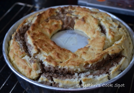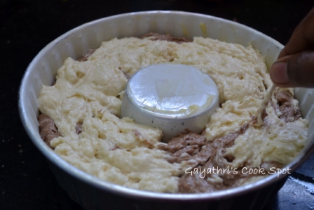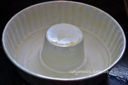 Greasing and dusting is so important in this type of pans. Even a small point is left without the greasing, the cake will stick there and doesn’t come out as a single piece.