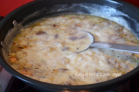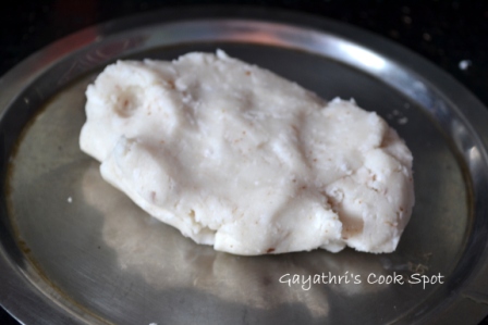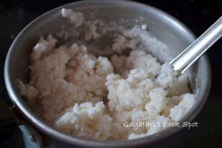 - Add the rice flour, remove from flame and mix with the back of ladle.