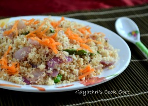 Today comes another upma for the third day of Blogging Marathon #21. I made it with fresh bread crumbs and it is totally different from the bread upma I posted yesterday. I chopped onions into thick squares and so got a nice crunch in the upma which alternated the soft bread crumbs.I just added some grated carrots for garnish to make it bit colourful. It is very simple to make and very tasty. As it doesn’t have any spices, chutney or pickle would be great with this upma.