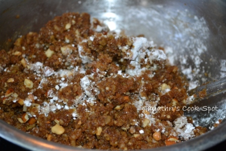 - Add 4-5tbs of water and heat the mixture on low flame until jaggery melts.