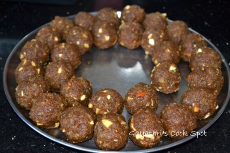 - Arrange the laddus on a plate and allow it to air dry for 5-6hours.