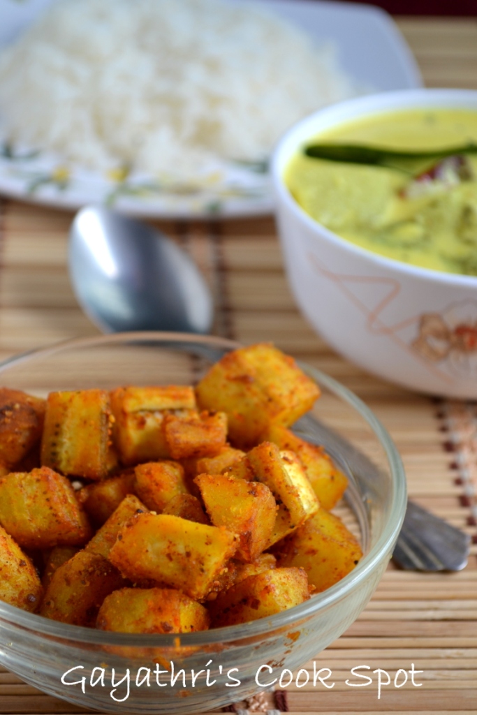 Raw banana roast is a simple dish to prepare. It goes well with paruppu, rasam rice, curd rice or mor kulambu. Serve it hot for the crispy roast.