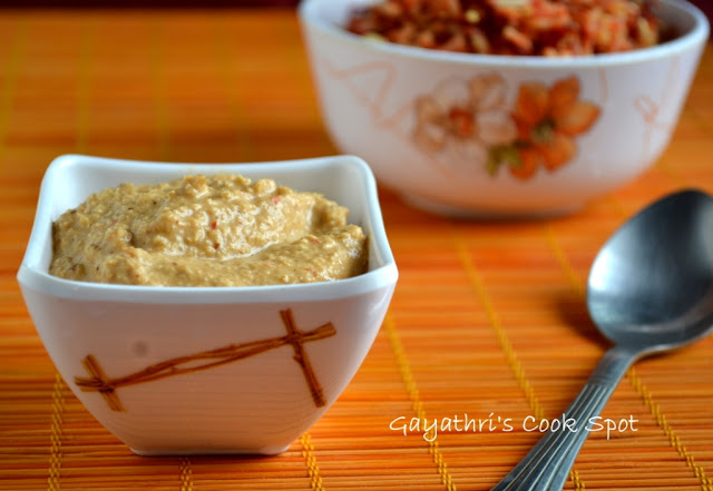 This is a flavourful thuvaiyal/ chutney using coconut and white sesame seeds. I haven’t tempered the thuvaiyal. But if serving it as chutney for dosas, it can be thinned down by adding water and tempered with mustard, urad dhal and curry leaves. I served it as a side dish for beetroot rice I prepared. It was a delicious combination and the thuvaiyal is very easy to prepare.