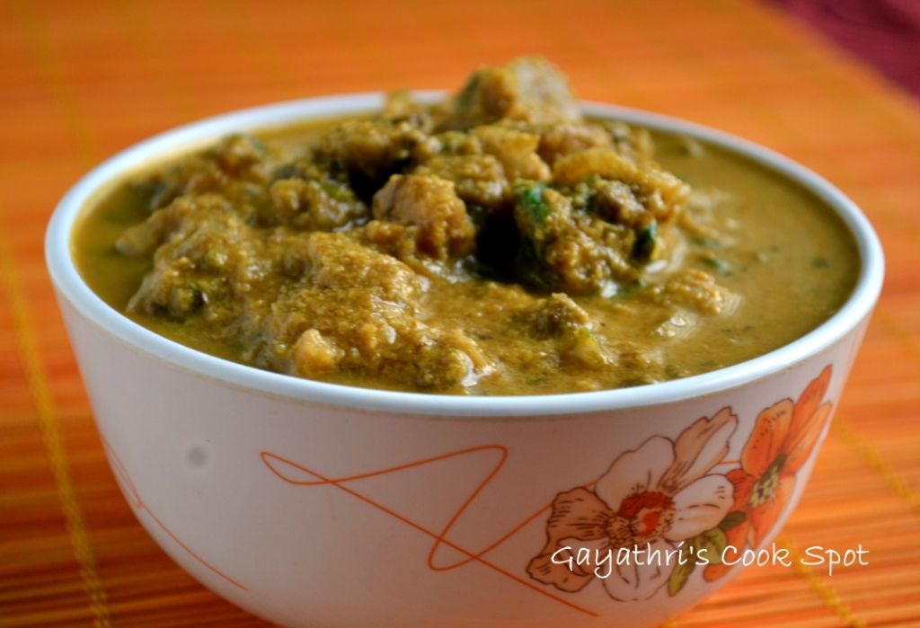 As a vegetarian, I have never missed mutton, though I have tasted it until I was 20. But hubby some times asks for gravies which tastes like the mutton gravy which his mom used to make. I have never cooked with mutton. So I didn’t know about the spice paste used to make that gravy. Once when we visited my aunt’s place, she prepared a gravy with button mushrooms and hubby liked it very much. He told that it tasted just like the mutton gravy his mom made. So I asked my aunt for the recipe and tried it at home. Though the gravy was nice, it didn’t taste like the gravy she made. After so many tries, I nailed it. When sisters-in-law visited our home last month, I prepared this gravy. They were amused. They told that it tasted just like the mutton gravy and they were so happy. So finally I got to satisfy my hubby and his sisters with the vegetarian version of their favourite gravy. The recipe is very simple and I think the combination of mushrooms and the spice paste renders the taste. It goes very well with chapathi as well as rice. If you are a vegetarian who was once a non vegetarian, you can try this to bring back forgotten memories. I am linking this to WTML guest hosted by Preeti and started by me.