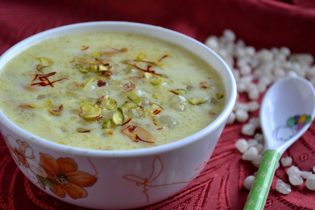 Javvarisi also known as sago, sabudana or tapioca pearls are rich in carbohydrates and contains no cholesterol, fat and protein. It is made from the root of tapioca/ maravalli kilangu. There are so many processes involved before the roots become pearls. It is known as poor man’s food. Javvarisi is used in paayasam, kanji, kheer, vadas, vadagam, cutlets and kichdis. Sago khichdi or kheer is used to break the fast during festivals. Javvarisi is usually presoaked or boiled in water before adding to any recipe. It becomes transparent and soft and resembles beautiful pearls in the finished dish. Sago flour is also used in preparation of flat breads. Usually javvarisi paayasam is made with out milk but as I wanted to make a richer version I added milk and saffron. It tasted delicious and creamy.