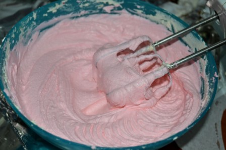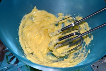 Next add the colour you have chosen. Add the colour in drops. Always you can add more but will neer be able to reverse it. So be careful while adding colours. Liquid colours or gel colours are best suited for colouring. If you are using powdered colour, then add a little warm water to the powder. Make sure it is completely dissolved. Then add the required colour to the cream. If you add powder directly to the cream, you will end up with irregular shades and dots in the final cream. I learned it the hard way. So do not make that mistake. Your butter cream is ready for frosting.