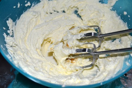 Beat butter until soft and fluffy. The colour of butter will become paler with beating.