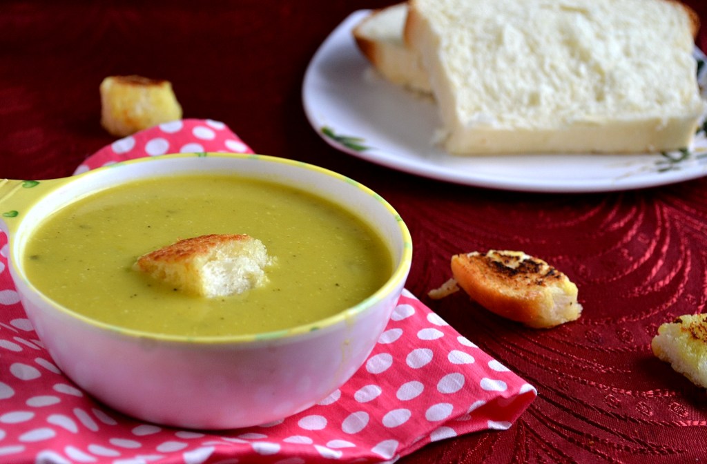 Ingredients: Moong Dhal-1/2 cup Rice Bran Oil-2 tbs Onion-1 Garlic-2-3 pods Green Chilly-2 Turmeric Powder-1/2 tsp Salt-to taste Pudina Powder-1/2 tsp Black Pepper Powder-1/2 tsp Cumin Powder-1/2 tsp Honey 2 tbs Procedure: 1. Wash the moong dhal. 2. Add it to pressure cooker along with 2 cups of water. 3. When the first whistle blows, simmer and cook for 5 minutes. 4. Let the pressure come down. 5. Mean while heat oil and add chopped garlic, green chillies and onions. 6. Saute until golden. 7. Add turmeric powder and saute for a minute. 8. Now add this to cooked moong dhal and blend the mixture with a hand blender until smooth. 9. Add enough water to adjust the consistency of the soup. 10. Add salt, pepper powder, cumin powder and pudina powder. 11. Bring it to boil. 12. Simmer and let the soup boil for 5 minutes for all the flavours to seep in. 13. Pour soup into bowls, add croutons and serve immediately.