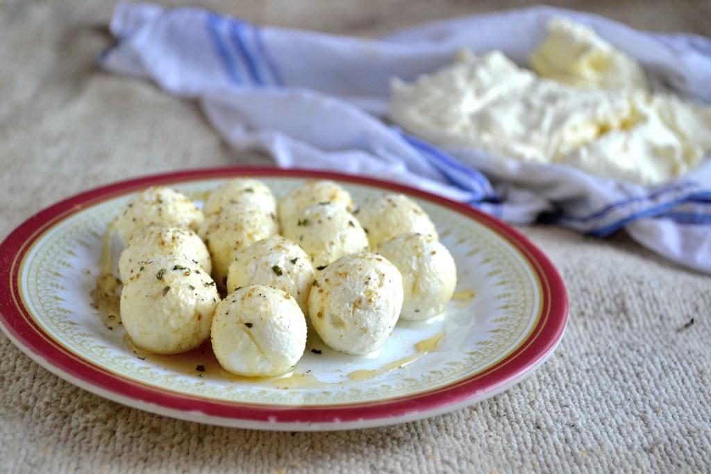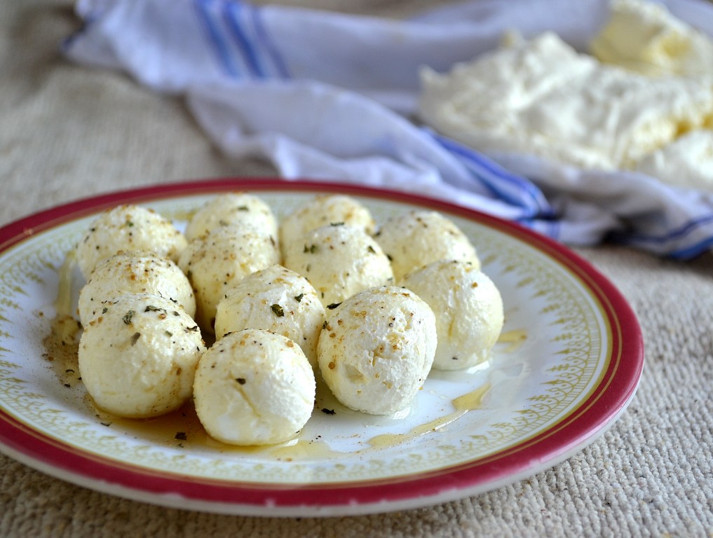 This month’s Daring Cooks Challenge is all about home made cheese. The host Sawsan of Chef in Disguise, challenged the cooks to go cheesy this month. She provided many recipes for cheeses but I had to skip many as they use rennet which is made fro bones of animals. So I selected Lebanese cream cheese or curd cheese known as labneh and curd cheese balls known as labneh korat for the challenge. The labneh can be spiced according to our taste and be used as a spread for crackers or bread slices. Labneh korat is curd cheese balls often served as appetiser by rolling the balls in sesame or pepper. I drizzled honey on the labneh korat along with some spices and they tasted delicious. You get a buttery creamy taste when relishing labneh korat and it kind of melts in the mouth. I served labneh along with cream crackers and my daughter went crazy. Whenever she returns from school she asks for the spread and when I was out of stock she has been pestering me to make another large batch.