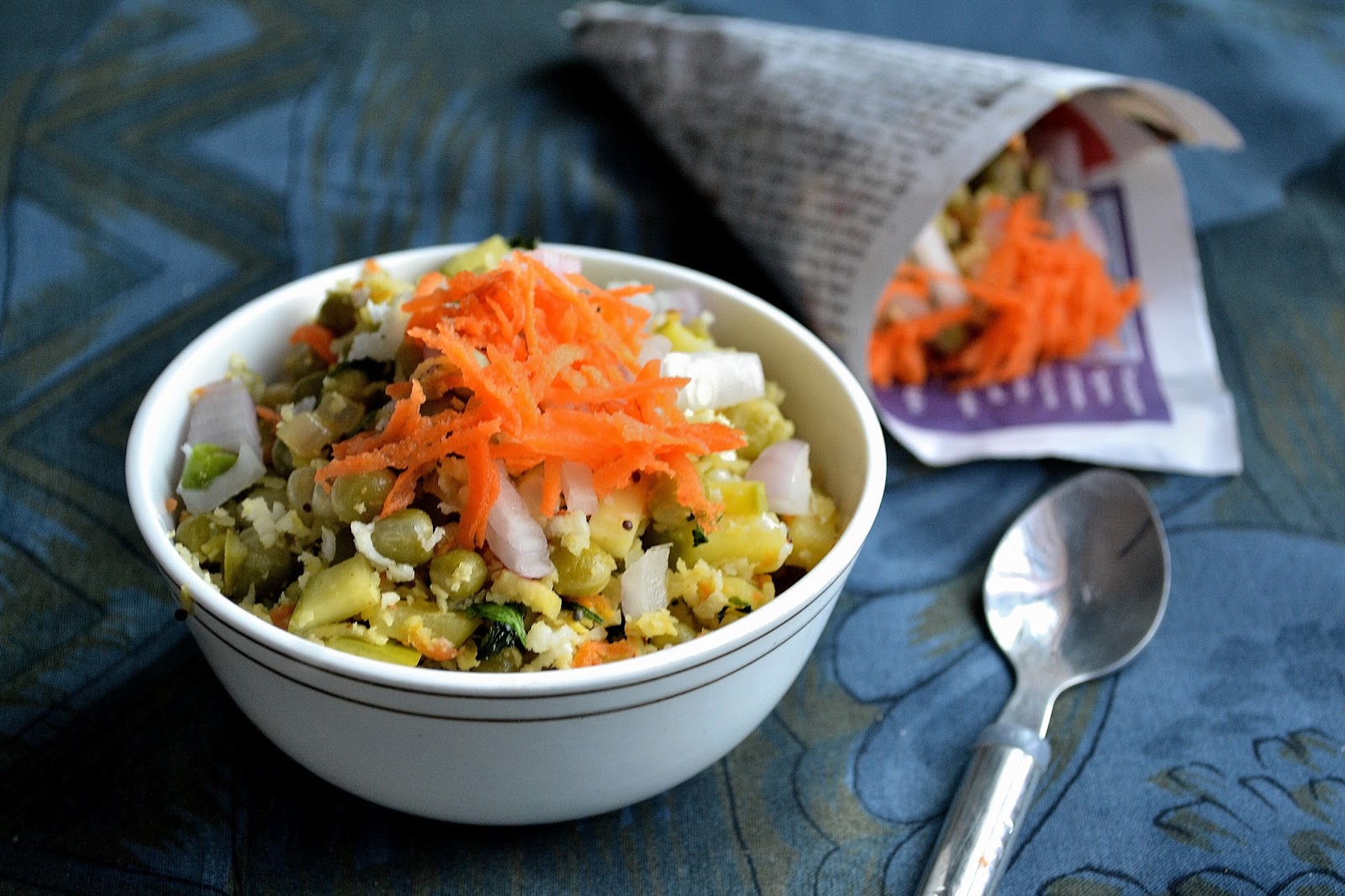 12. In a serving plate/ cup / paper cone take some sundal, top with onion and carrot and serve immediately.