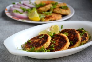 After a very long time, I am taking part in Blogging Marathon this month. For the first week, I have chosen dishes with curd. Srivalli asked us not to go with raithas as they are very simple. On seeing the theme cooking with curd, the recipe which came to my mind immediately was the dahi kebab from Tarla Dalal’s Mughlai Khana book. I have this in my to do list for long but never attempted it as I was a bit skeptical. But there is nothing to worry about as it turned out so so delicious. They are so creamy and soft with a nice crispy crust. The tang of curd along with paneer makes the dish awesome. Yesterday we had these kebabs with our evening tea and we enjoyed it a lot. Hung curd along with crumbled paneer and spices are coated with bread crumbs and they are usually deep fried. But I shallow fried them with very little oil in a non stick pan. So it is also a guilt free snack. If you are not worried about calories, then you can deep fry it for the extra taste..