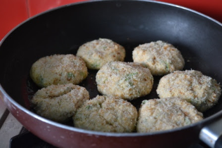 8. Cook on medium flame until the bottom is crispy and the kebab is firm.