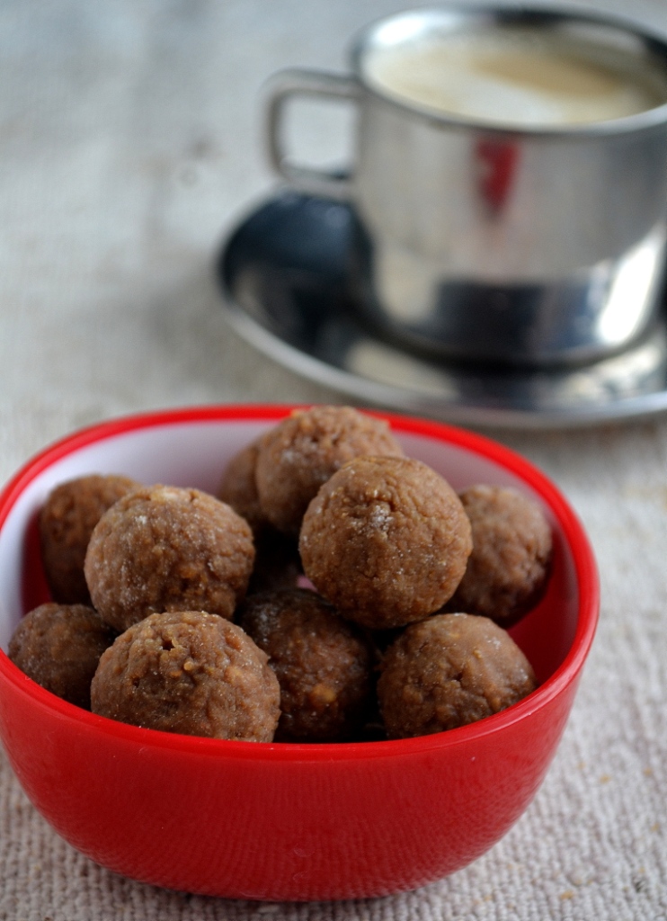 For today’s Blogging Marathon post under the Tea Kadai Menu, I selected kamarkat. Kamarkat is a toffee made with jaggery and grated coconut. The important step in making kamarkat is preparing the syrup to the right consistency. I think I removed it from stove a little earlier. I ended up with chewy kamarkat. Actually it has to be rock hard. My mother used to prepare kamarkat at home and it would taste exactly like the store bought one. But mine tasted like thengai urundai. I think I need to practice it a lot to master it. Any how hubby gave a thumbs up as he loves thengai urundai. Kamarkat has to be shaped into small balls when still hot, so be careful while working with hot jaggery. Once it cools down, it is not possible to get a smooth ball. So once the mixture is out of the flame, you need to work fast. And hubby’s point was I should reduce the amount of coconut to get the exact taste. Point noted and next time I will update this post if I get it perfect..