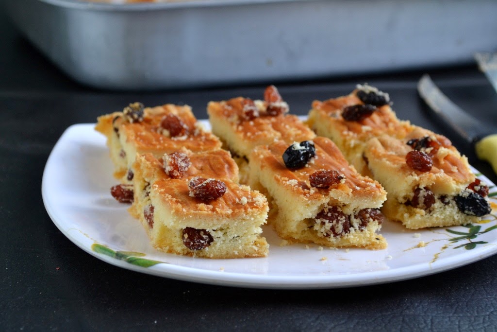It has been already the end of the third week on our incredible journey of A-Z themed Blogging Marathon. I have reached the alphabet R without any hurdle and God help me to cross the next week too. Today for the alphabet R, I was not at all ready with a post. I had bookmarked a recipe from Joy of Baking and it was in my bookmarks till noon today. But I had to make it. So gathering up some strength, I baked these shortbread bars with lots and lots of raisins. If you are a raisin lover like my daughter, then this would be a perfect bake for you. The bars turned out light and crispy and the raisins added the softness in between the crispness.