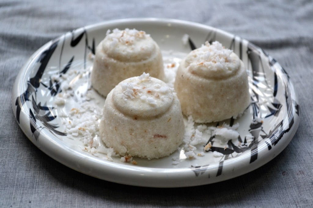After 10-12 minutes, remove from the plate and serve topped with coconut.
