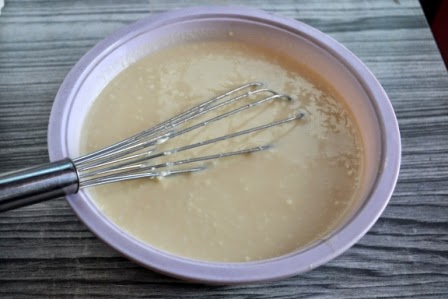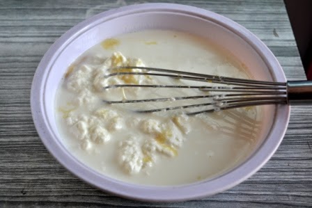 1. Whisk together hung curd, condensed milk and milk .