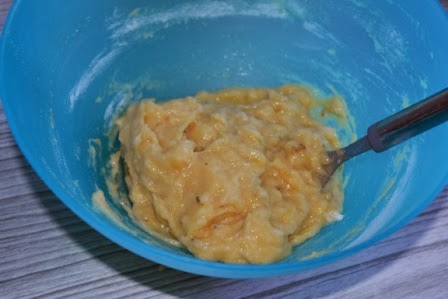 1. In a bowl take jaggery and bananas. Mash them with a fork until it becomes a loose batter.