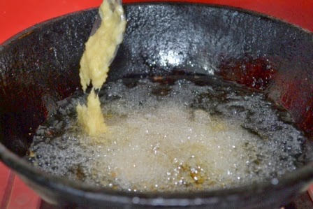 3. Heat oil in a pan and drop tablespoons of batter into medium hot oil.