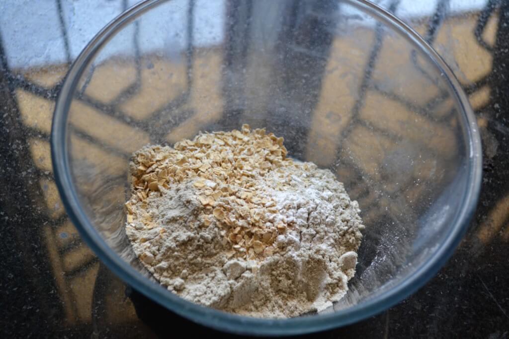 - In a bowl, mix together pearl millet flour, oats and baking powder.