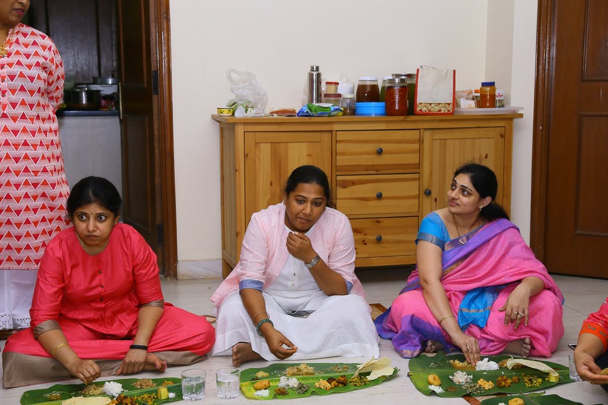 Once all the dishes were ready, we were ready to serve people. But before that our beloved mamis Veena Krishnakumar, Priya Srinivasan and Sandhya went and changed into madisar which was a wonderful sight.