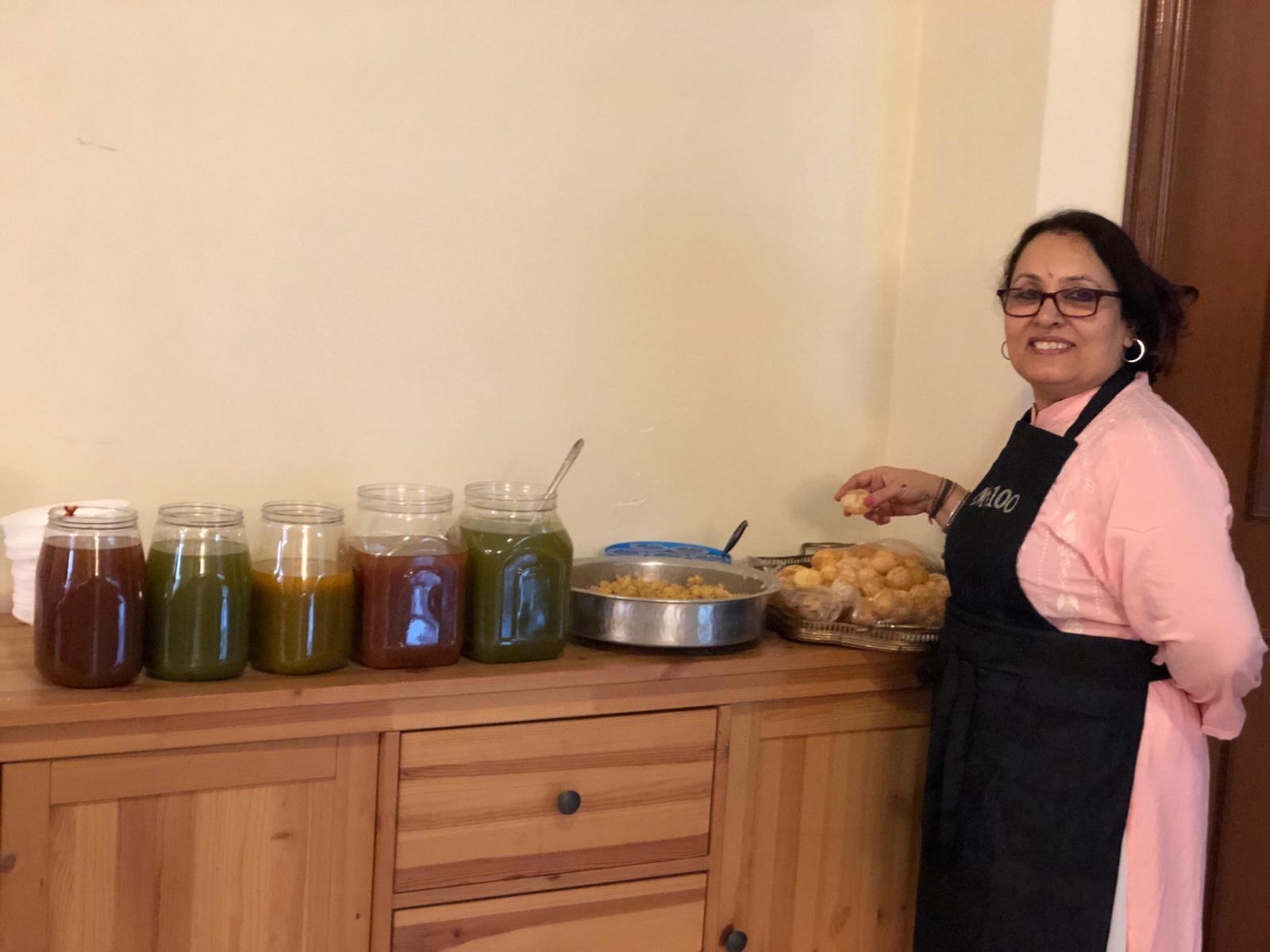 By the time thaligai was getting ready, Vaishali was preparing the pani puri for the evening. She made five different pani to go along with the puris.