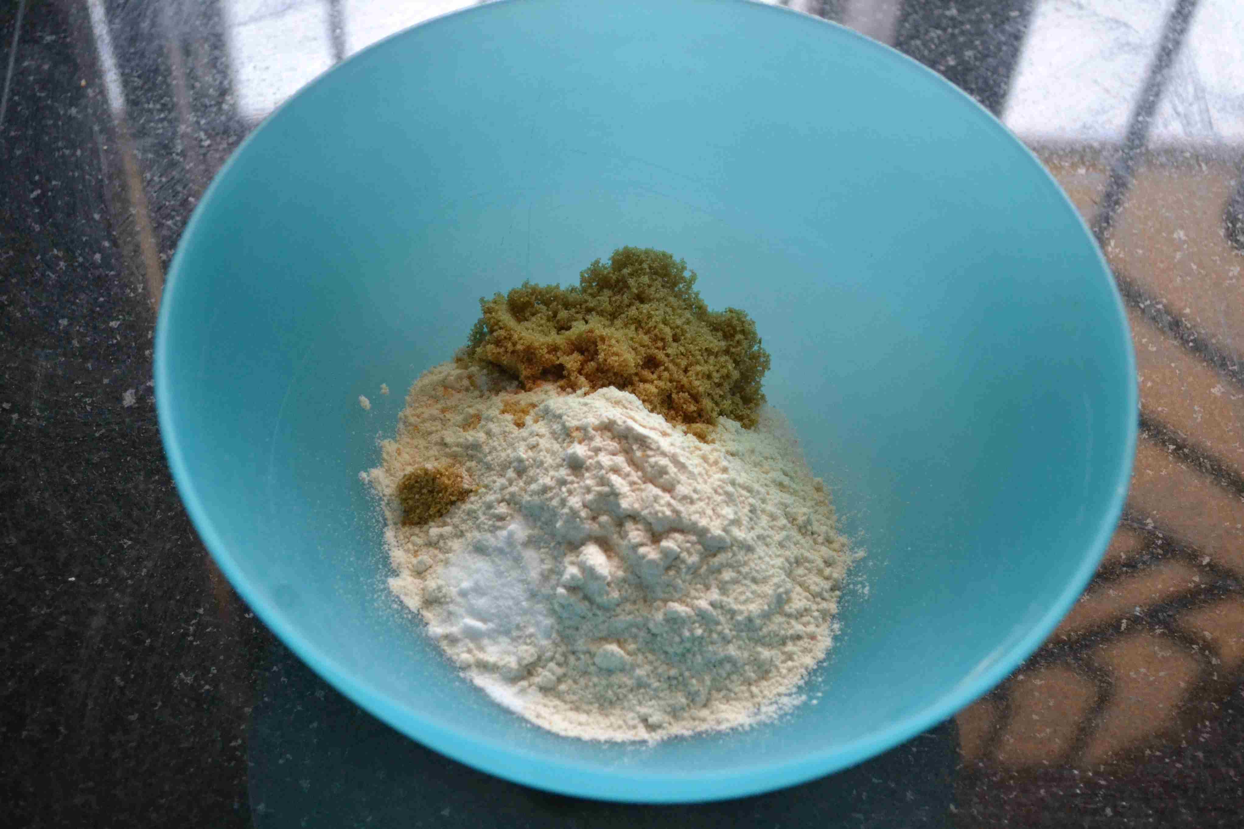 - In a bowl, mix together flour, baking soda, sugar and salt.