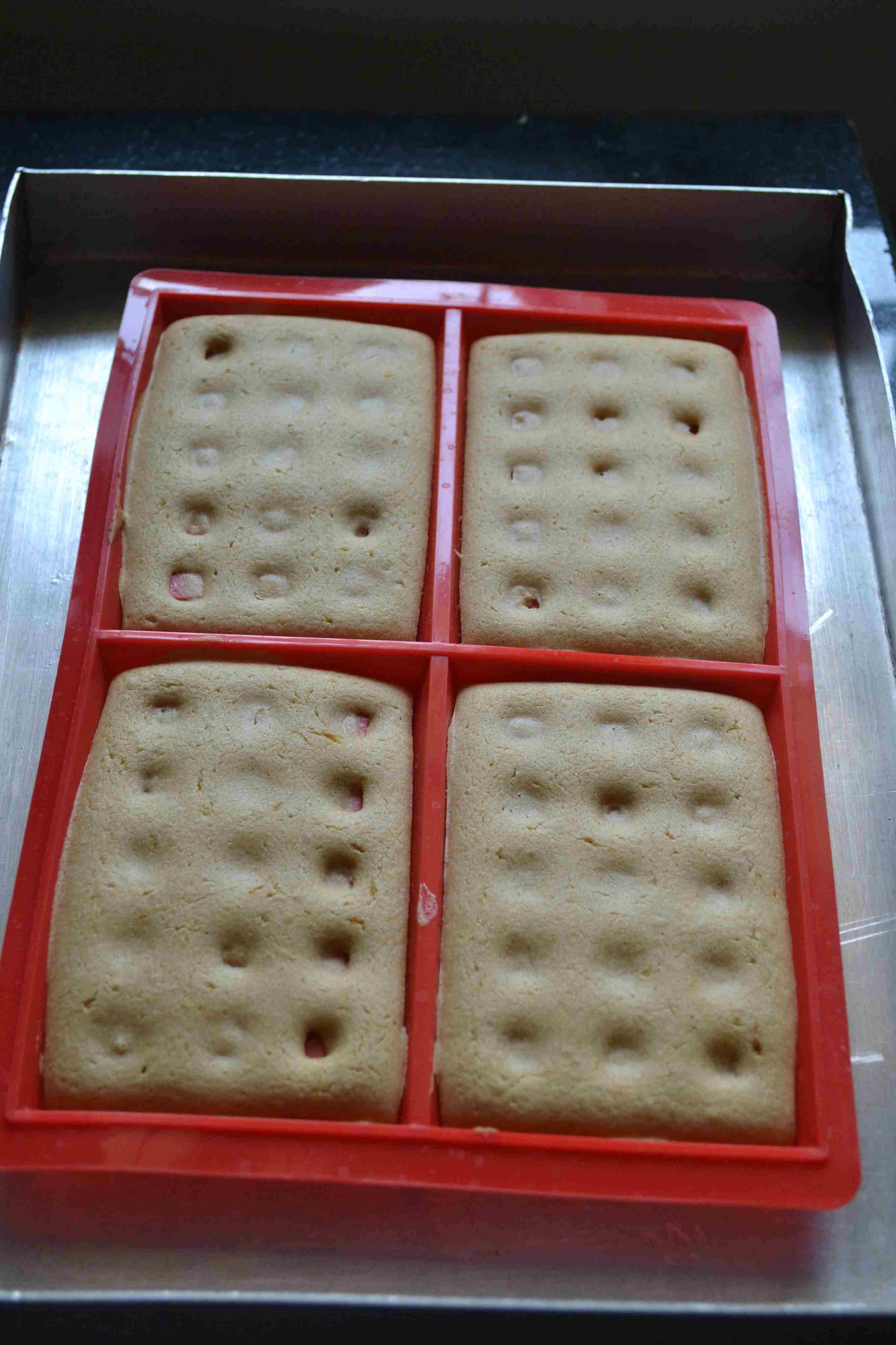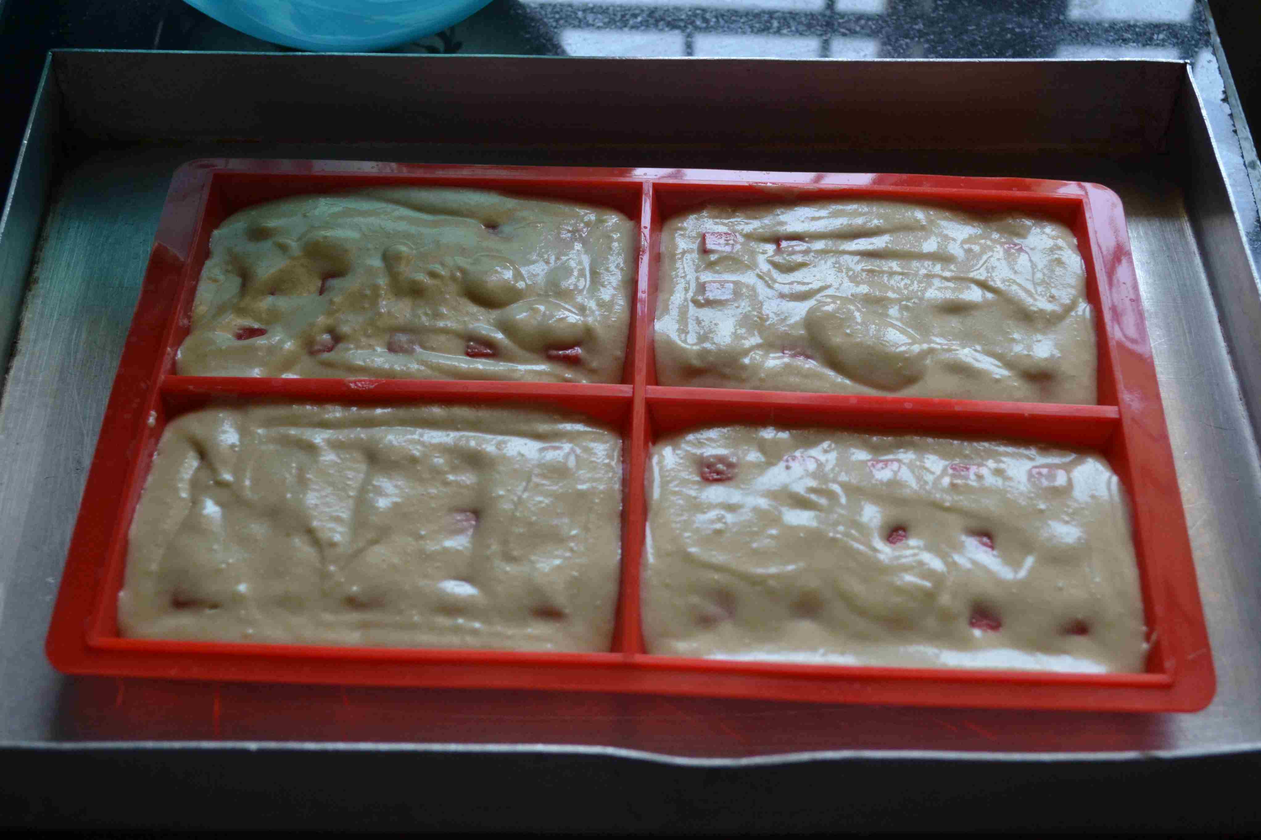 - Pour it into a rectangular waffle mould and spread the batter evenly.