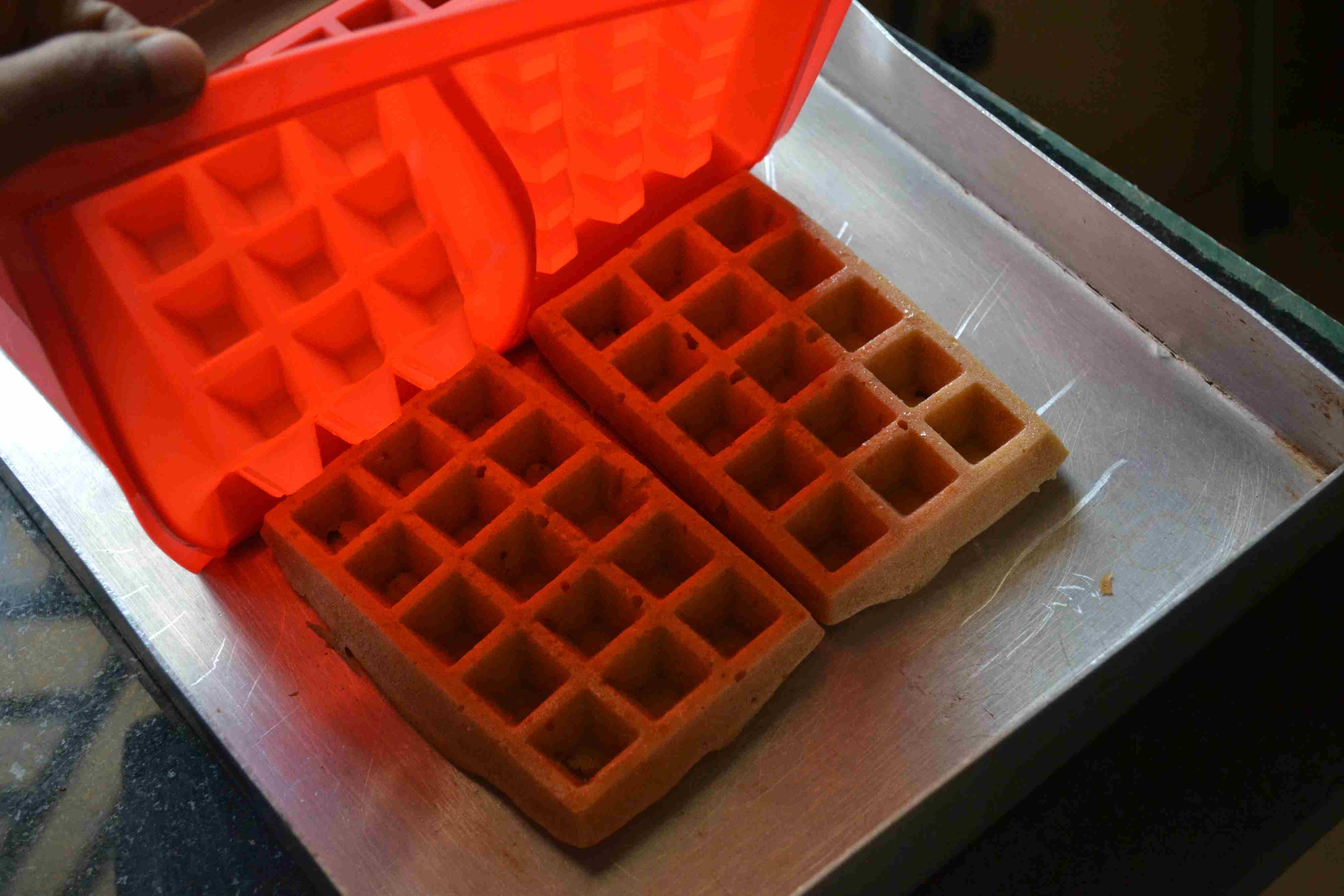 My daughter is a crazy fan of waffles. When we eat out, she makes sure to have a waffle with ice cream. When daughter likes something, I try to make it at home. I was looking for waffle makers on Amazon, but nothing was good. The quality was so inferior, I didn’t want to waste hard earned money on those. The only good waffle makers were all commercial and were too expensive for home use. Then I saw these waffle moulds and it was just perfect for me. Though it won’t be as good as the traditional waffles, it would serve the purpose. Do you remember the three ingredient chocolate sauce recipe I posted? Every time it comes up in the feed of FB, someone will ask about the waffles. Though I had all the pictures, I never got the time to draft the post. Finally settled down today to do it.