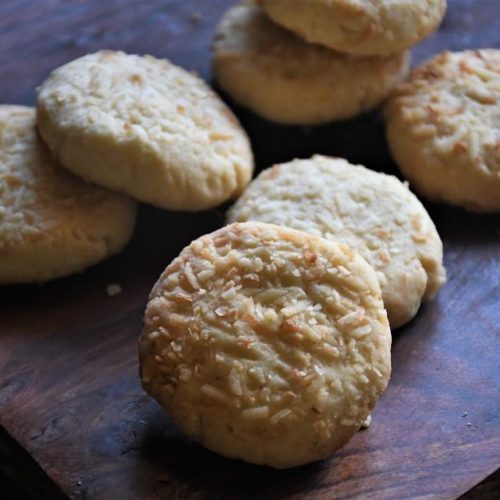 Coconut biscuits recipe makes some amazing buttery crispy coconut biscuits similar to the ones available from Indian bakeries. Biscuits are absolute favourite of Indian. We just love crispy biscuits than the soft and chewy ones. If you serve it with coffee or tea, we would happily dip the biscuits in them and relish it to the core.