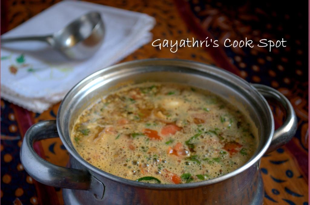 This is the simple form of rasam. There are many varieties which I will be posting in the future. The Recipe: Ingredients: Dhal stock-5-6cups Tamarind-1 lemon sized ball Tomato-3nos Red chilly-4nos Pepper and cumin powder-2tsp Curry leaves-6nos Coriander leaves-for garnishing Mustard-1tsp Cumin-1tsp Methi seeds-1/2tsp Hing-1/2tsp Turmeric powder-1/2tsp…