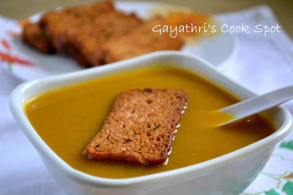 It is raining heavily and the climate is very cold. I was having sore throat and feeling very bad yesterday morning. A warm comforting soup can do magic for my throat. I had carrots, so prepared this very easy soup with herbed croutons. I felt relieved after consuming this hot soup. …